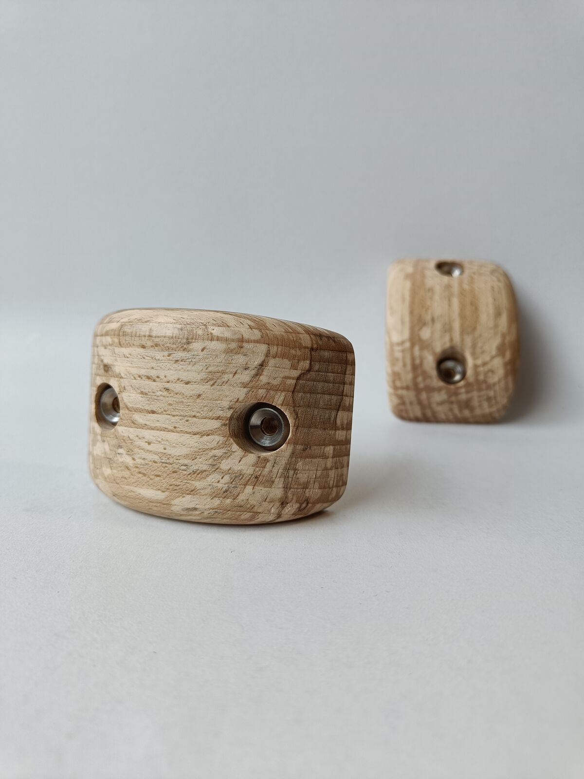Unsere Klettergriffe sind auf das Wesentliche reduziert – ohne Logos oder Aufdrucke, damit das Holz und sein einzigartiger Charakter für sich selbst sprechen können.