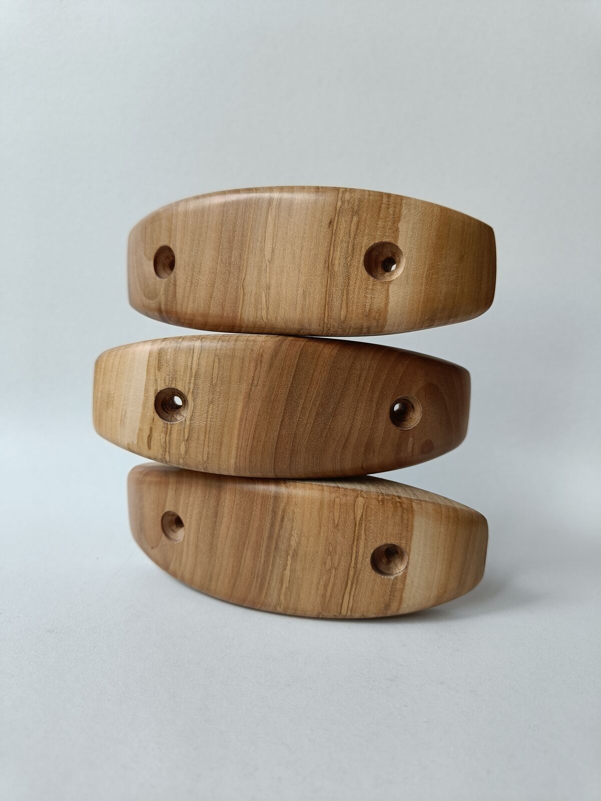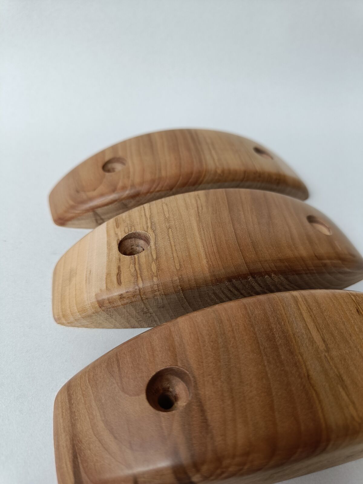 Set of 3 holds, made of apple wood. The sides are angled by 0 degrees.