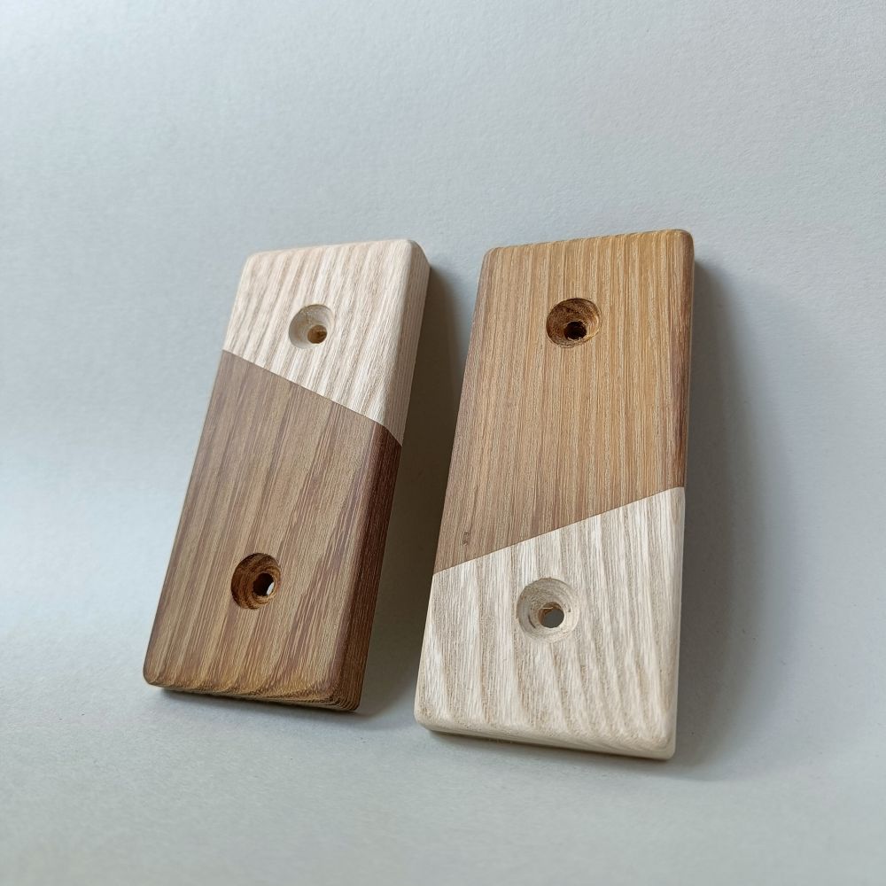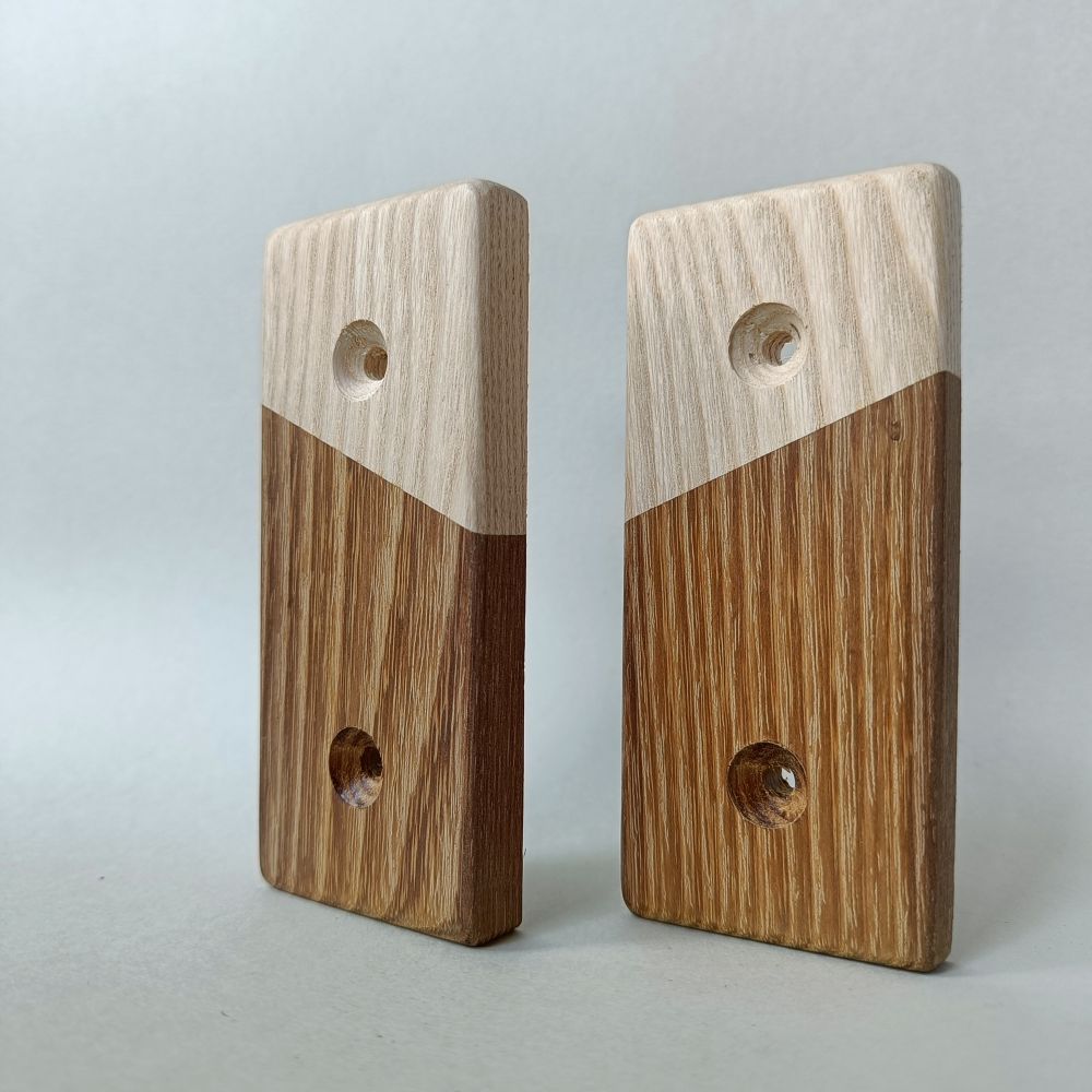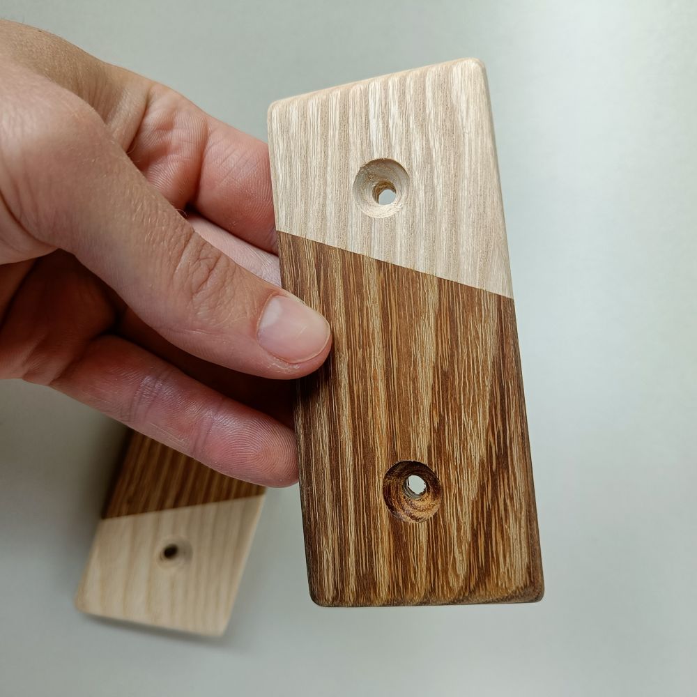 Our climbing holds are crafted from high-quality wood. Some have stainless steel rosettes to add extra protection, preserving the wood's appearance even with heavy use.