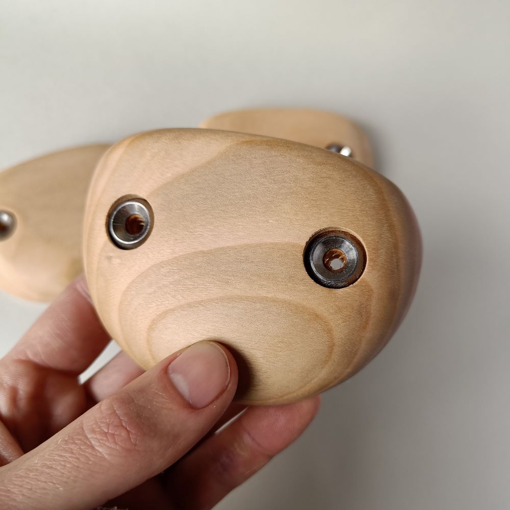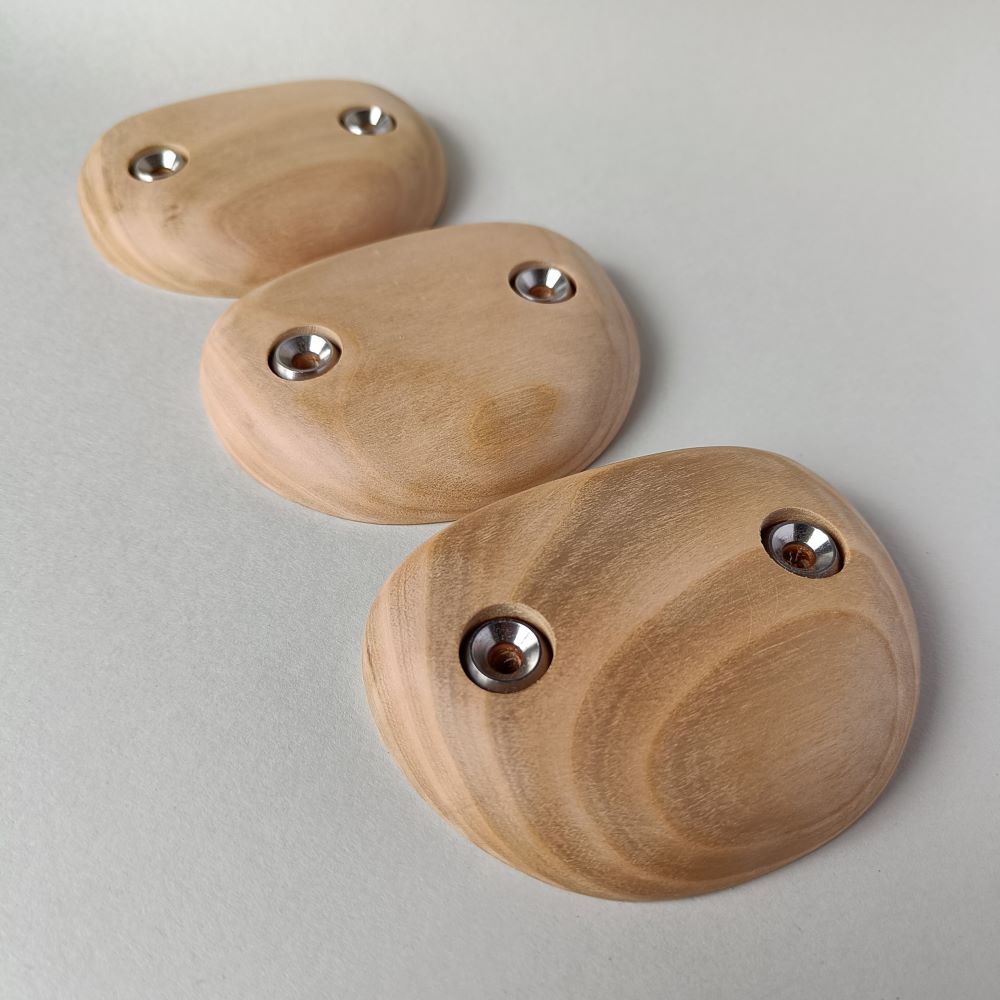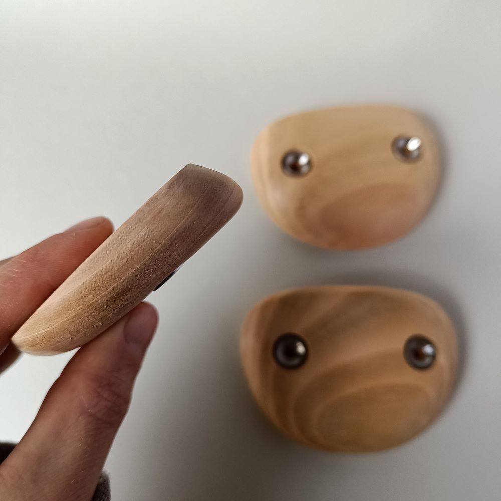Our climbing holds are crafted from high-quality wood. Some have stainless steel rosettes to add extra protection, preserving the wood's appearance even with heavy use.
