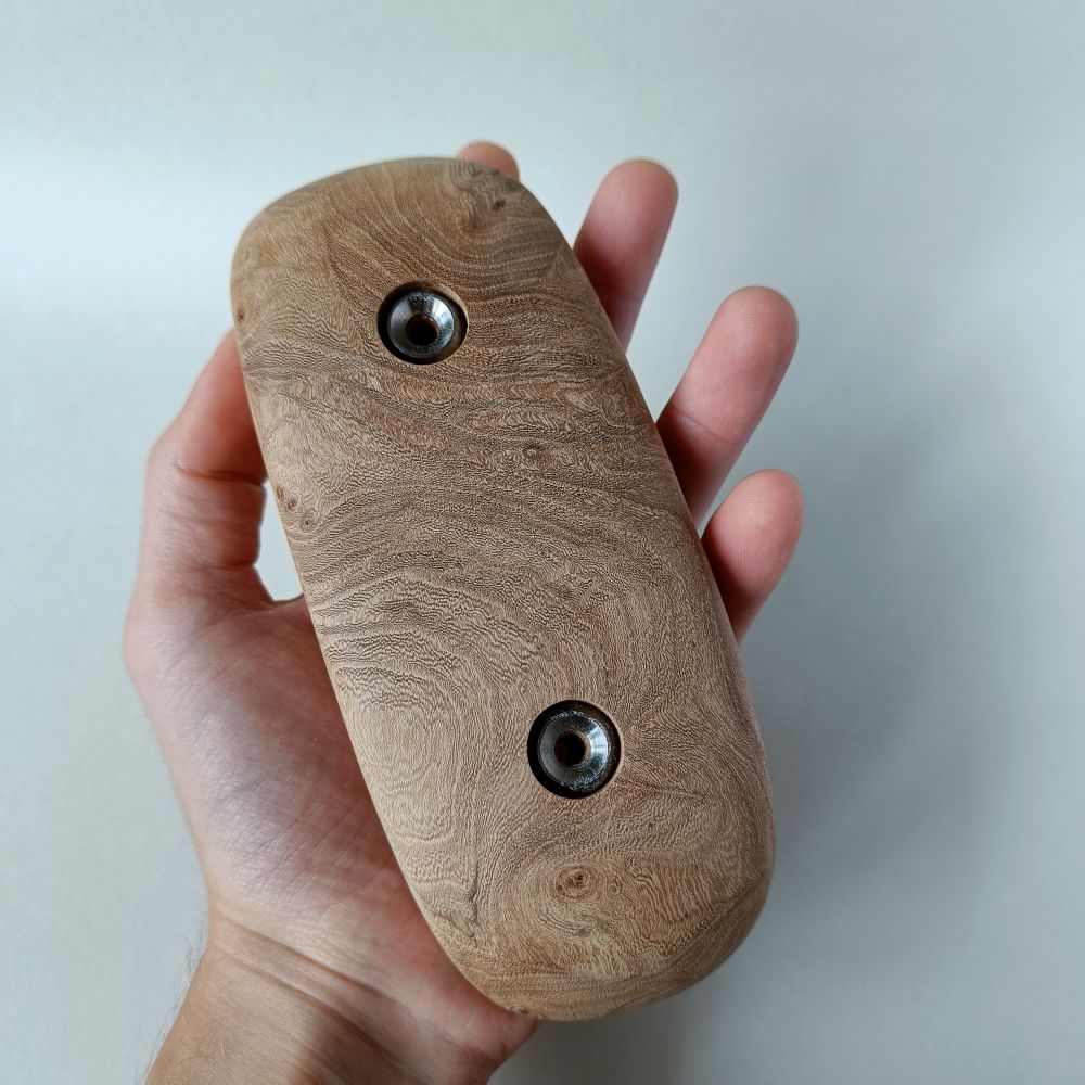 Single hold, crafted of high-quality elm burr. The sides are angled by about 20 degrees.