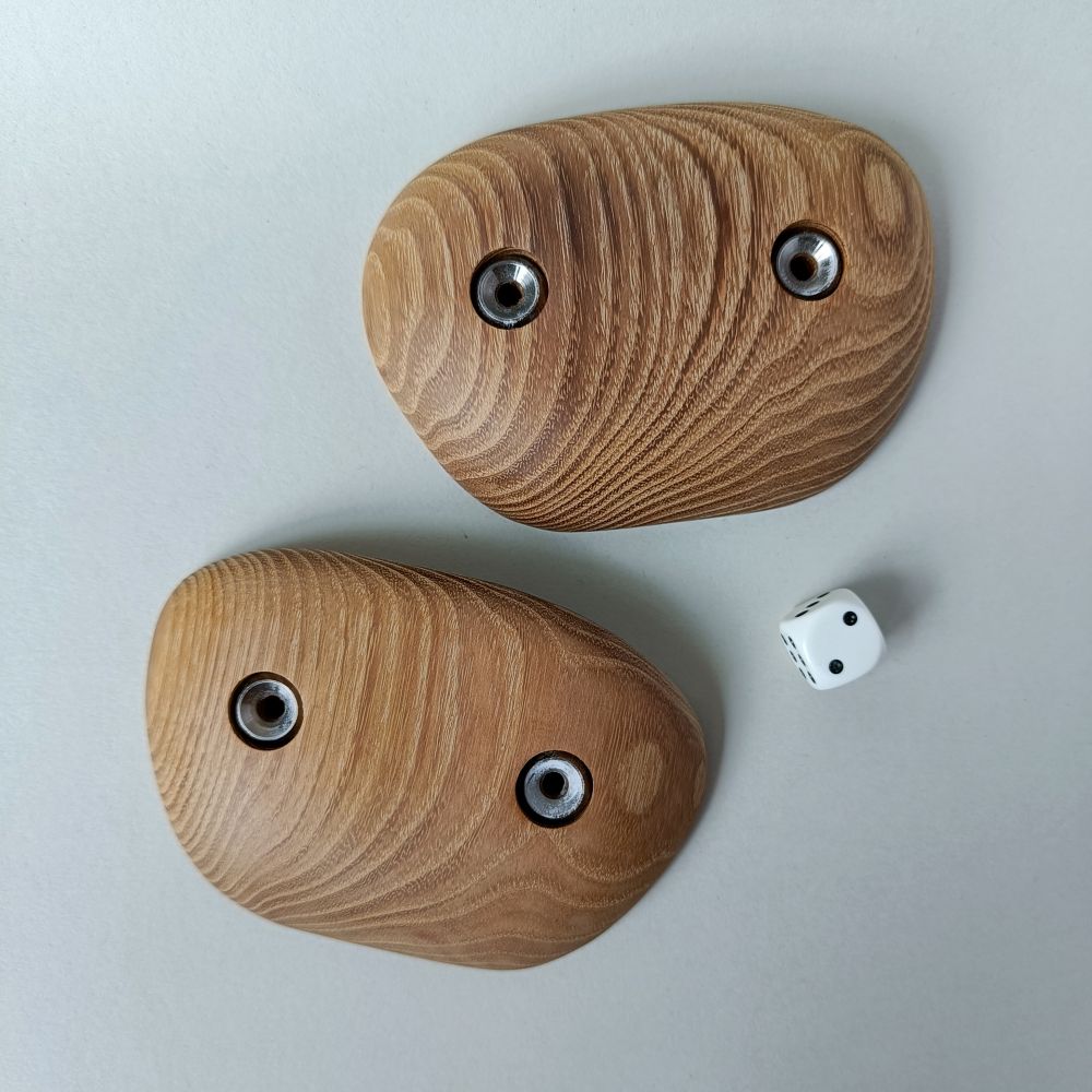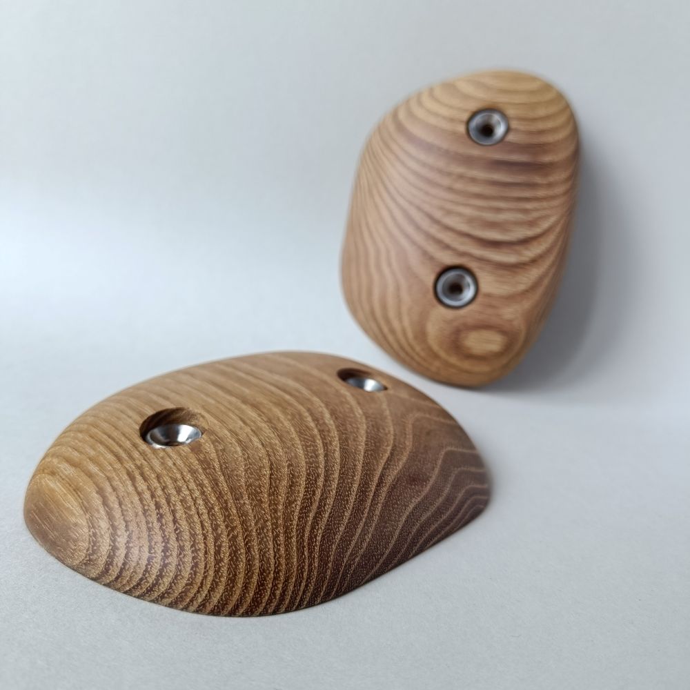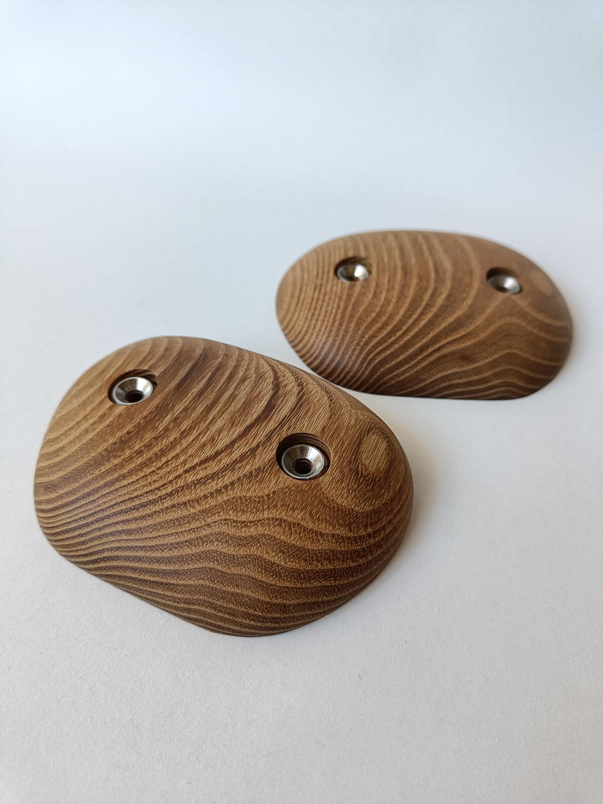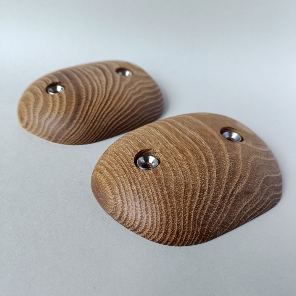 Set of 2 holds, made of durable robinia wood. The edges are angled by about 20 degrees.