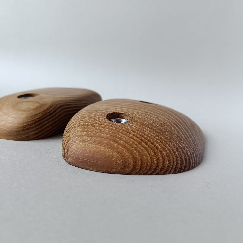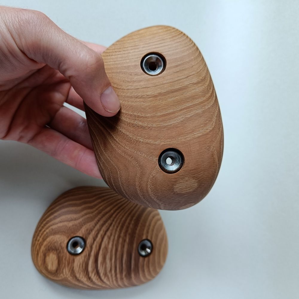 Our climbing holds are crafted from high-quality wood. Some have stainless steel rosettes to add extra protection, preserving the wood's appearance even with heavy use.