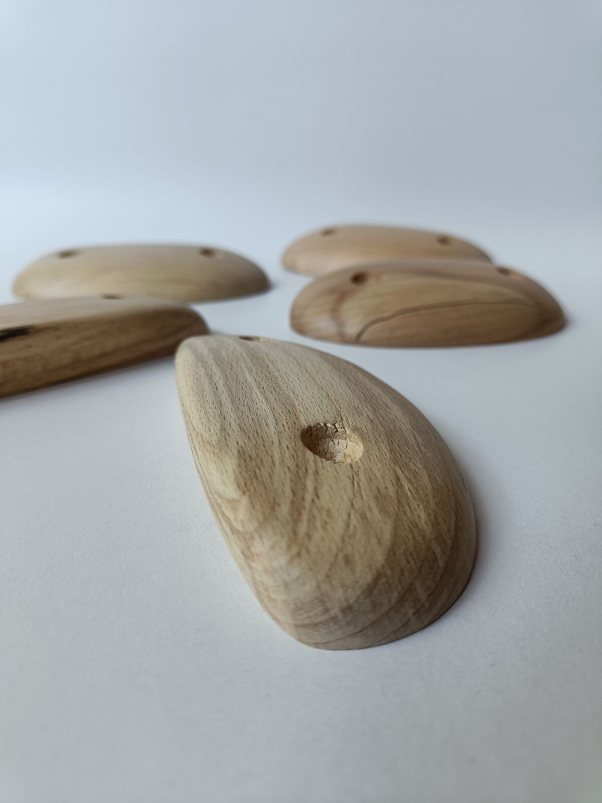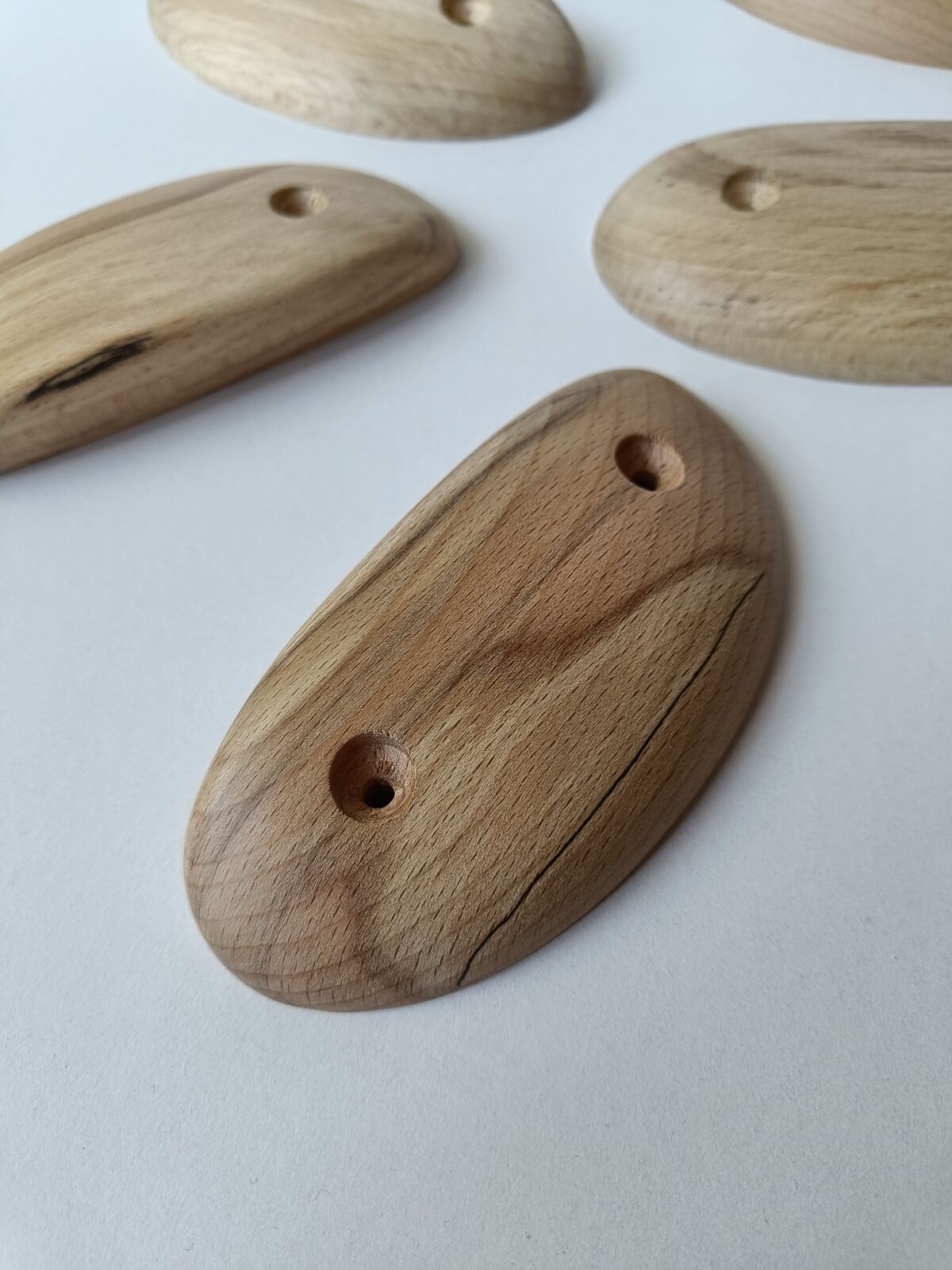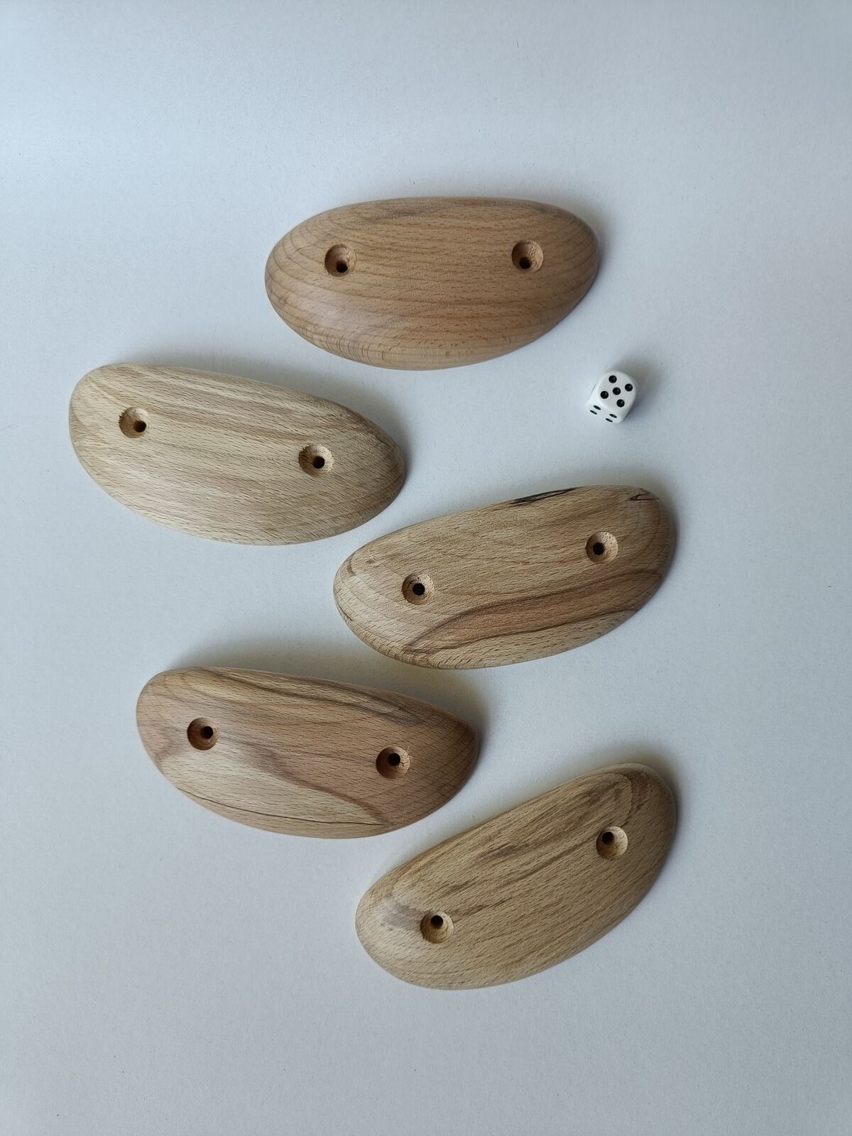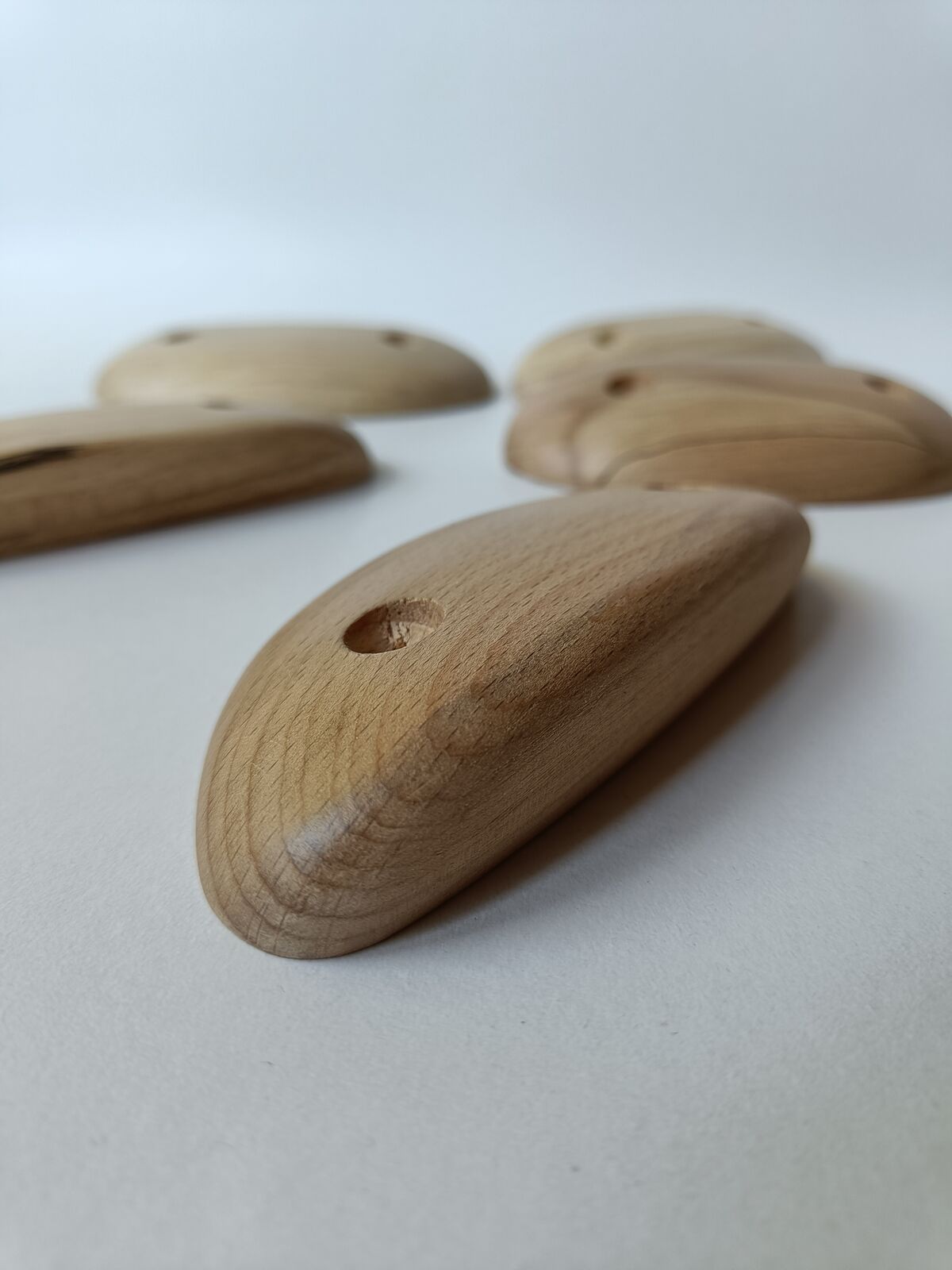 Set of 5 holds, made of beautiful spalted beech. The edges are angled by about 10 to 20 degrees.