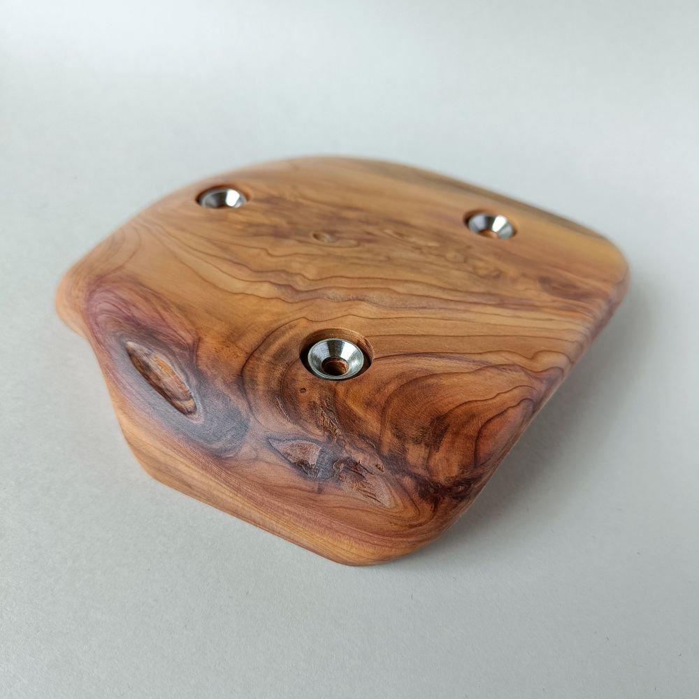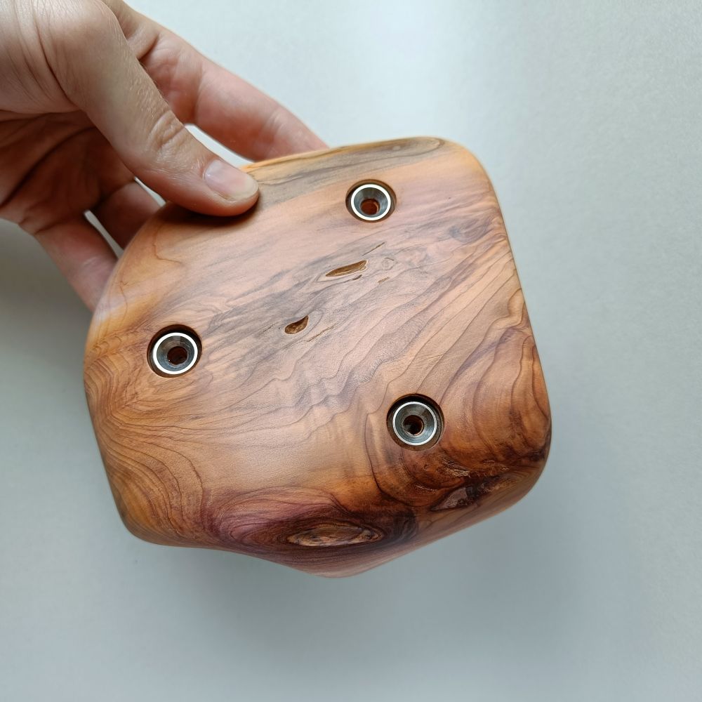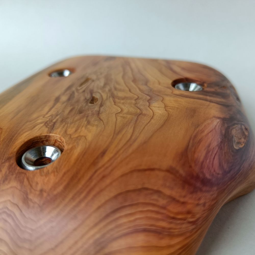 Our climbing holds are crafted from high-quality wood. Some have stainless steel rosettes to add extra protection, preserving the wood's appearance even with heavy use.