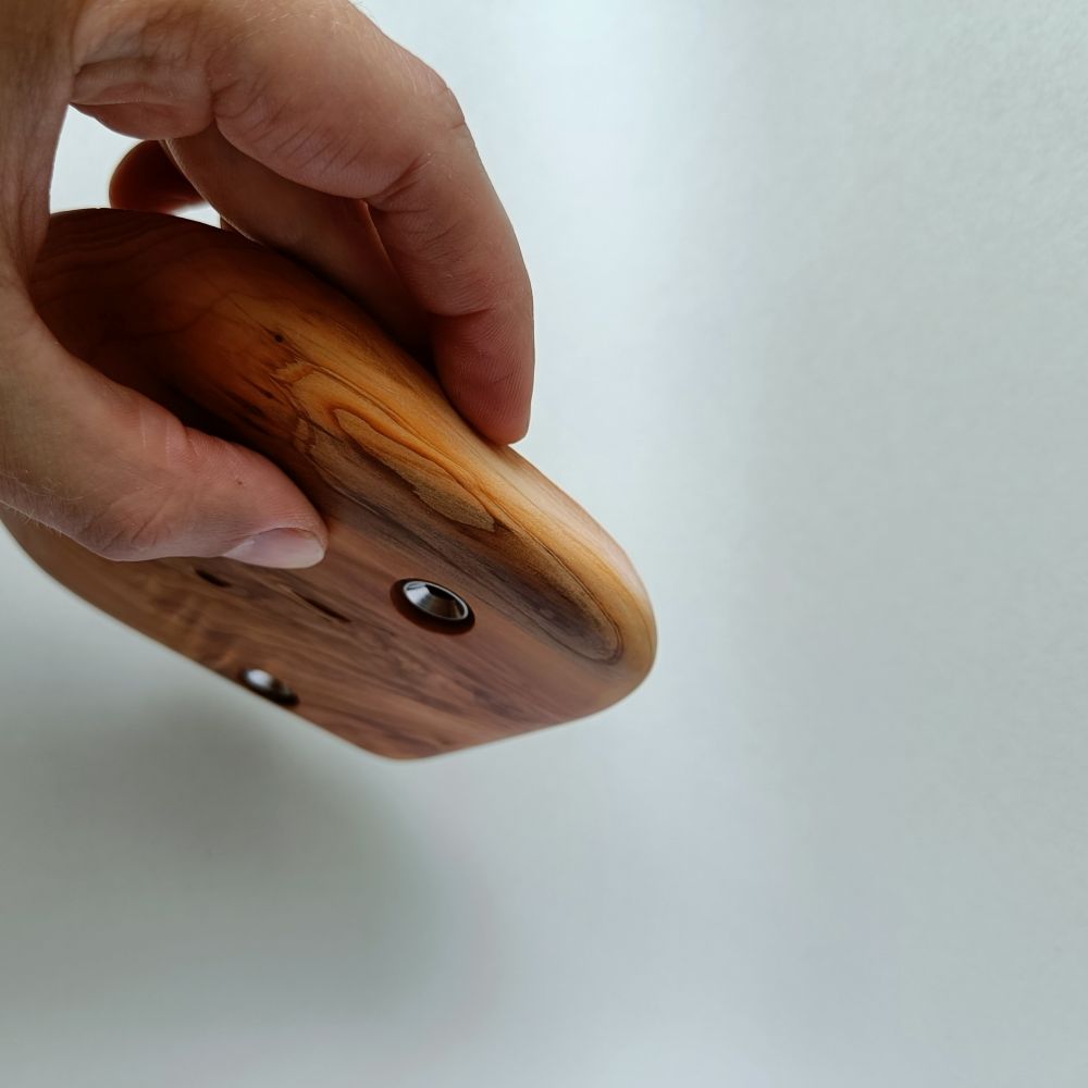 Single hold, crafted of high-quality beech wood. The edge is angled by about 20 to 25 degrees. The thumb catch is angled by about 10 degrees.