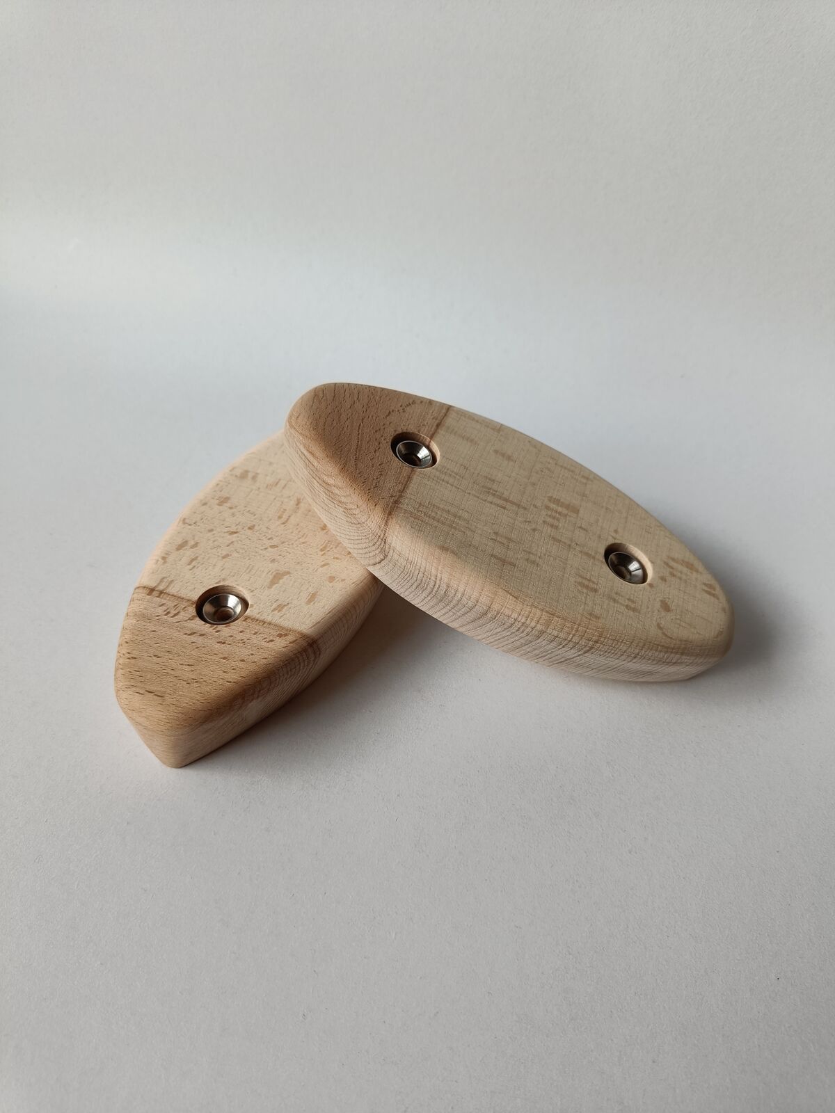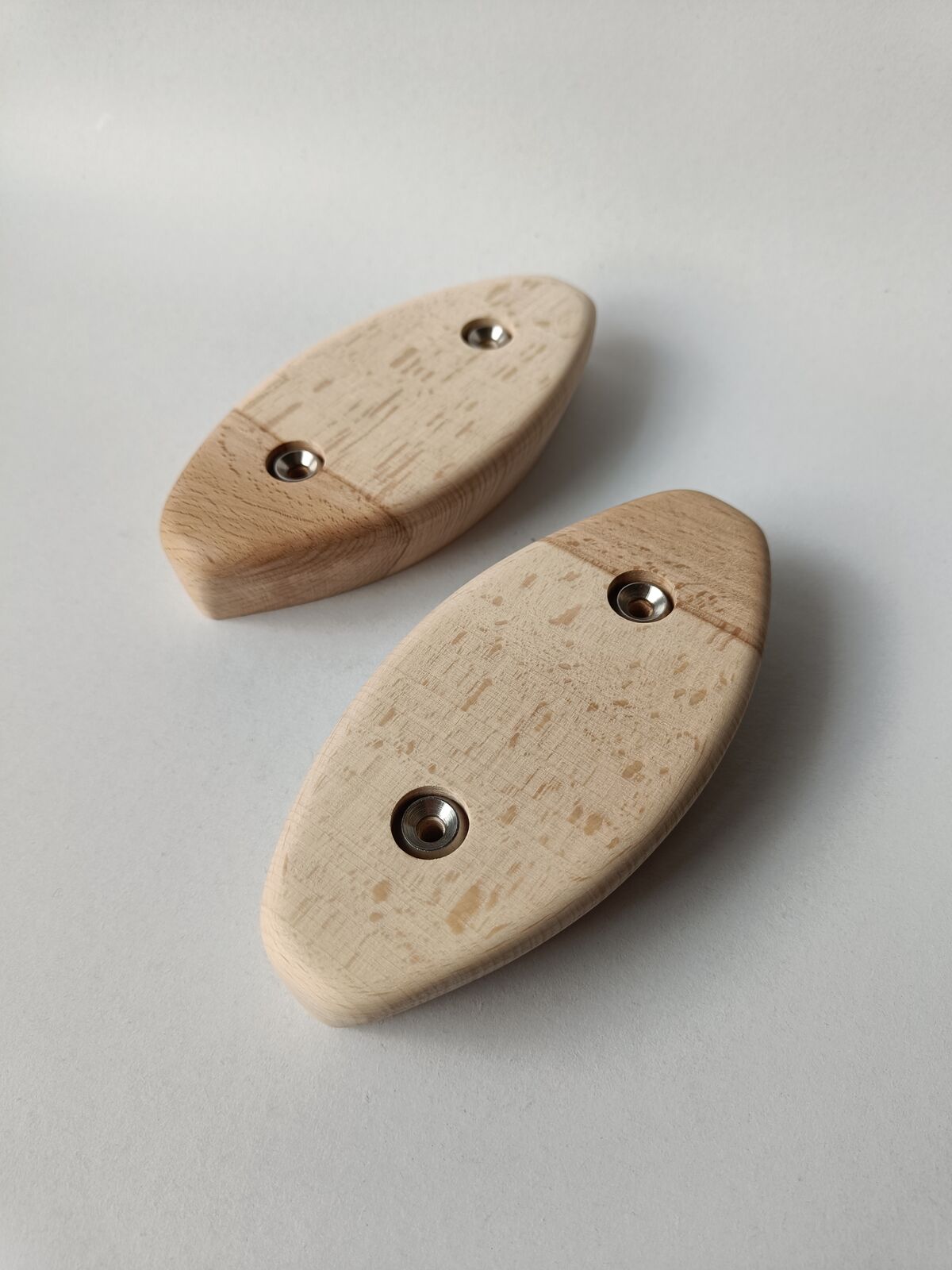 Unsere Klettergriffe werden aus hochwertigem Holz gefertigt. Manche sind mit Edelstahl-Rosetten ausgestattet, welche zusätzlichen Schutz bieten und die Schönheit des Holzes auch bei intensiver Nutzung bewahren.