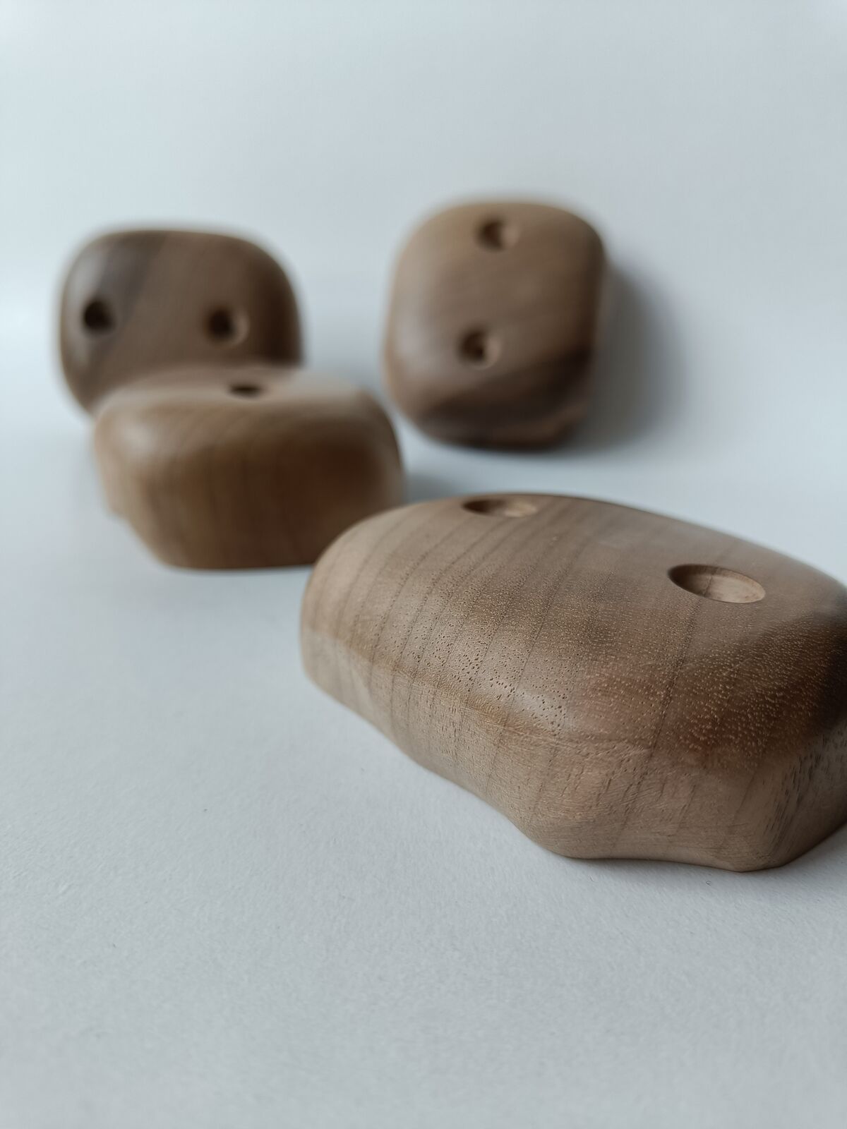 Bitte beachte, dass Holz unter Belastung brechen kann, daher ist es wichtig, die Klettergriffe regelmäßig auf Risse oder Beschädigungen zu überprüfen.