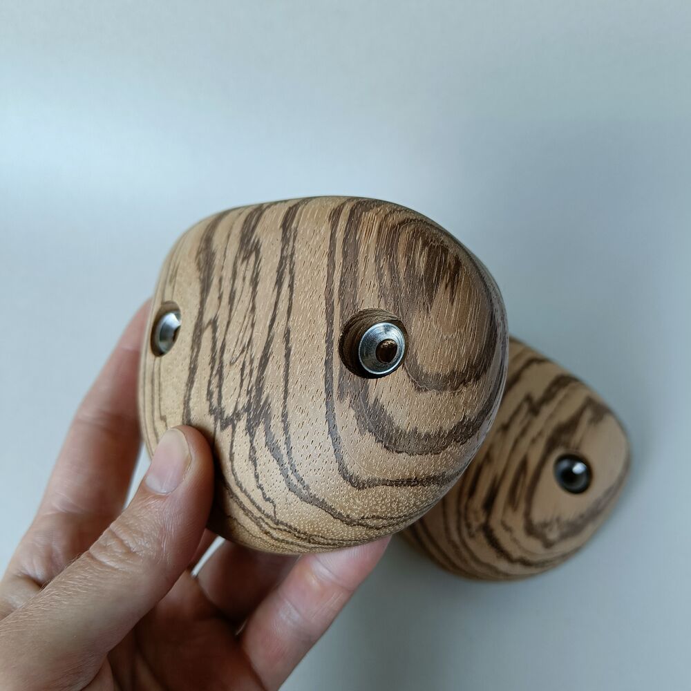 Unsere Klettergriffe werden aus hochwertigem Holz gefertigt. Manche sind mit Edelstahl-Rosetten ausgestattet, welche zusätzlichen Schutz bieten und die Schönheit des Holzes auch bei intensiver Nutzung bewahren.